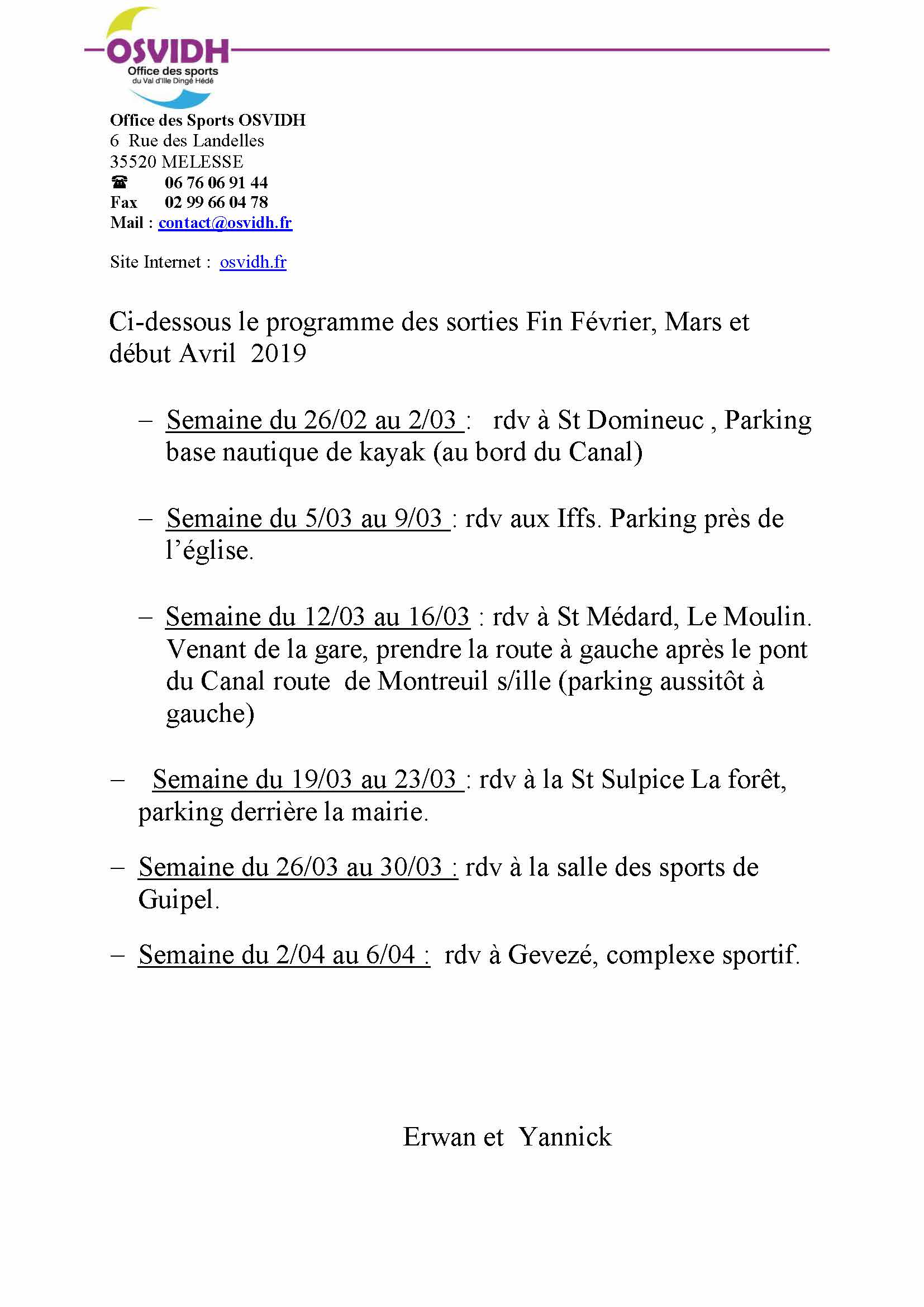 planning Fin Février-Mars-dédut Avril 2019